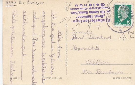 Gelenau im Erzgebirge Sonderstempel Kinderferienlager 1963