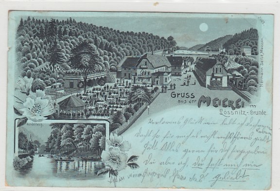 Meierei im Lössnitz-Grunde Lössnitz Lößnitz im Erzgebirge Stempel Kötschenbroda Litho 1900