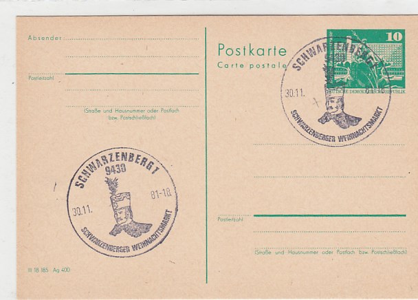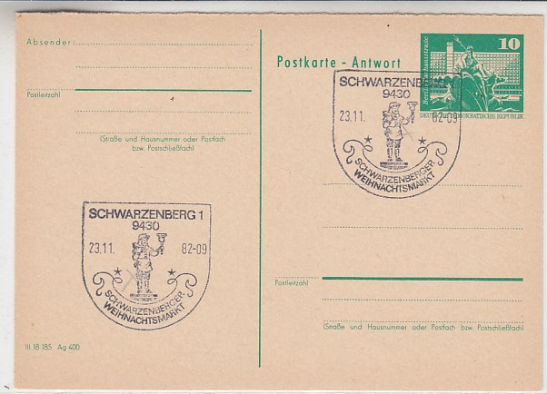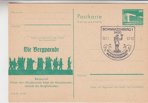 Schwarzenberg im Erzgebirge Postkarte mit Sonderstempel Weihnachtsmarkt 1982