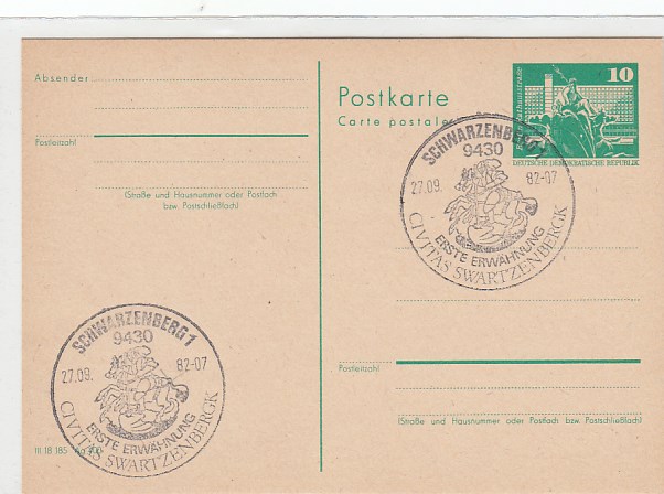 Schwarzenberg im Erzgebirge Postkarte mit Sonderstempel 1982