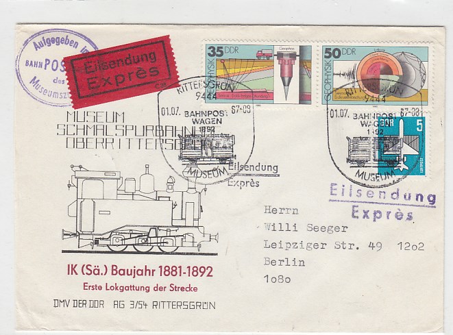 Rittersgrün im Erzgebirge Briefe Belege Eisenbahn Schmalspurbahn Sonderstempel