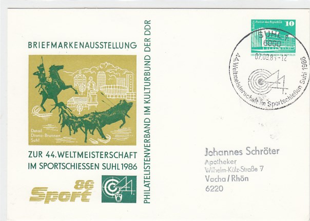 Suhl Thüringen Anlaß Postkarte mit Sonderstempel Schießen 1986
