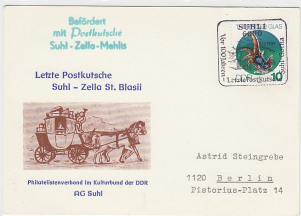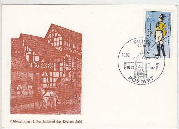 Schleusingen Postkutsche aus Suhl Thüringen Anlaß Postkarte mit Sonderstempel 1987