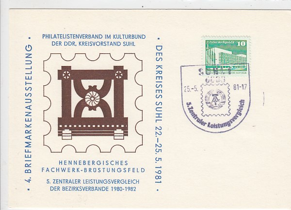 Suhl Thüringen Anlaß Postkarte mit Sonderstempel 1981