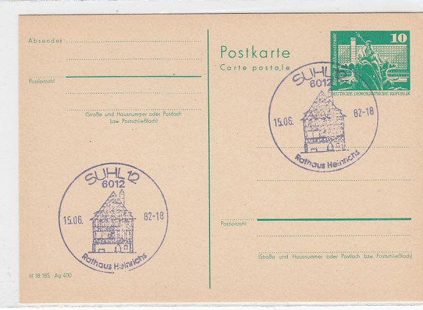 Suhl Thüringen Postkarte mit Sonderstempel 1982