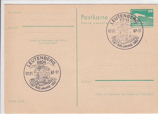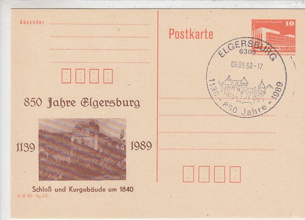 Elgersburg Thüringen Postkarte mit Sonderstempel 1989
