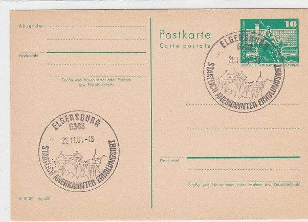 Elgersburg Thüringen Postkarte mit Sonderstempel 1981
