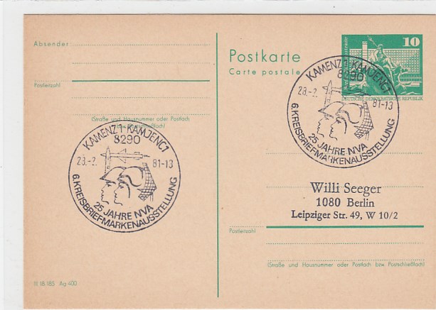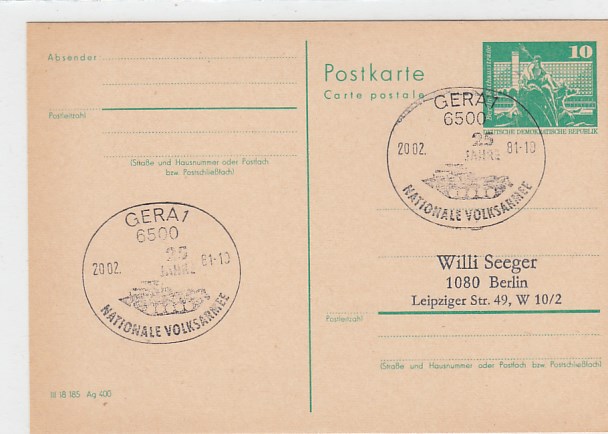 Gera Thüringen Postkarte Sonderstempel 1981 NVA