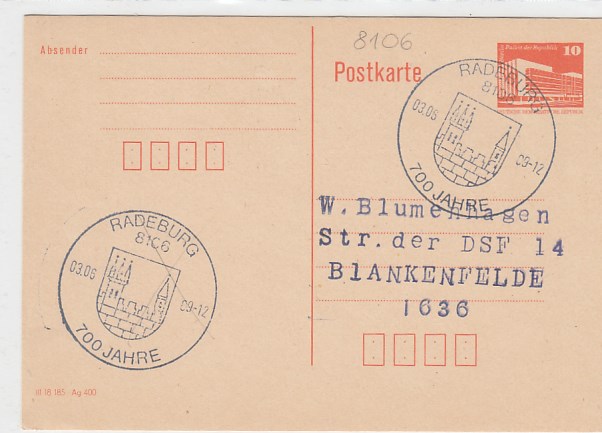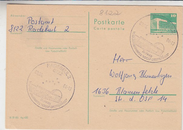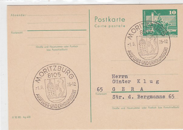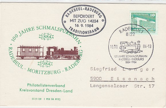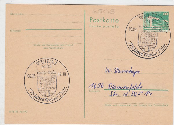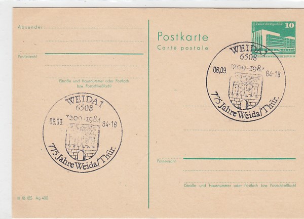 Weida in Thüringen Postkarte mit Sonderstempel 1984
