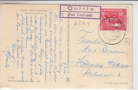 Quirla bei Stadtroda Thüringen mit Landpoststempel 1958