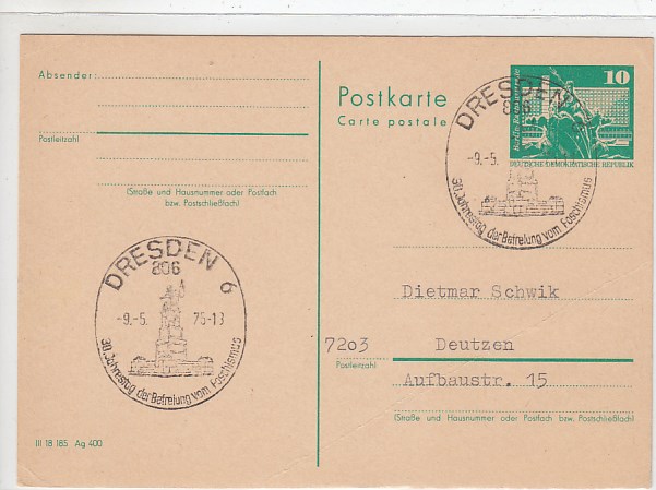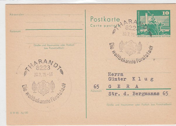 Tharandt in Sachsen Postkarte mit Sonderstempel 1975