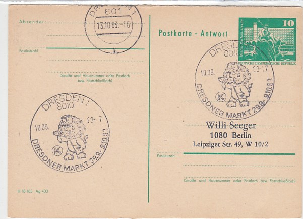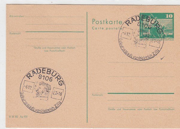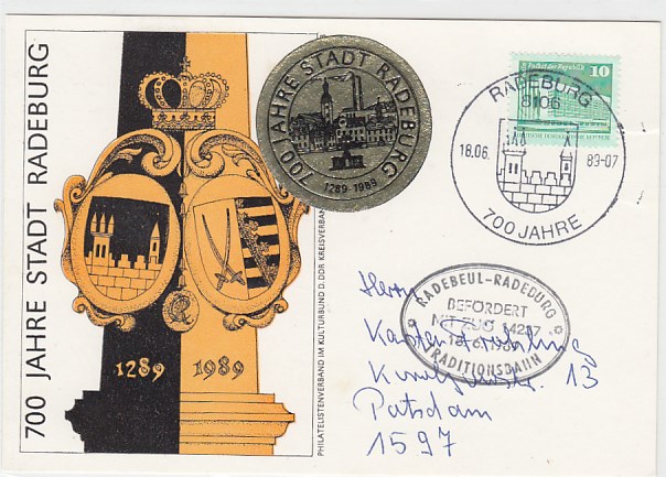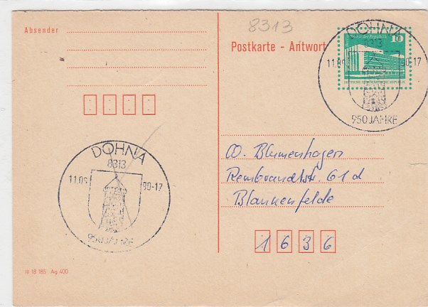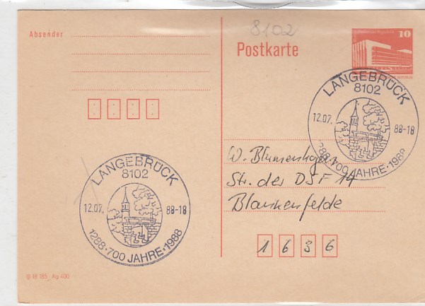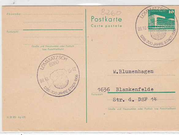 Lommatzsch Postkarte mit Sonderstempel 1985