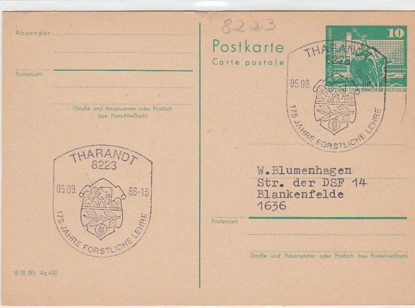 Tharandt in Sachsen Postkarte mit Sonderstempel 1986
