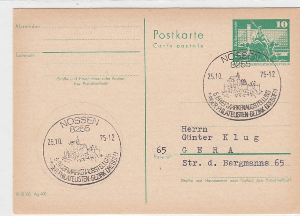 Nossen in Sachsen Postkarte mit Sonderstempel 1975