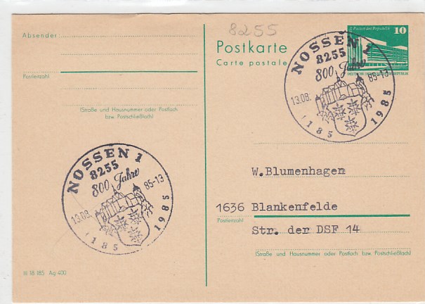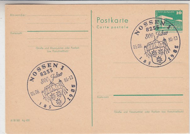 Nossen in Sachsen Postkarte mit Sonderstempel 1985