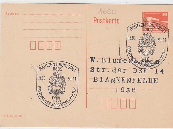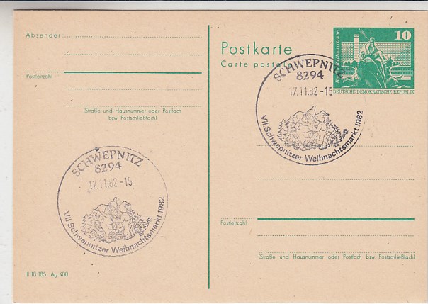 Schwepnitz Postkarte mit Sonderstempel 1982
