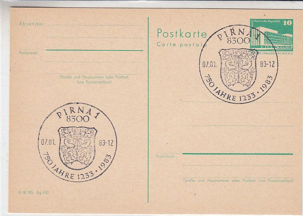 Pirna an der Elbe Postkarte mit Sonderstempel 1983