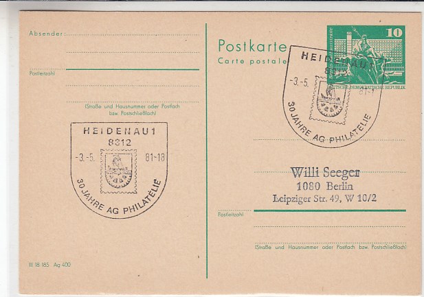 Heidenau in Sachsen Postkarte mit Sonderstempel 1981