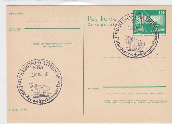 Rathen Sächs. Schweiz Postkarte mit Sonderstempel 1982