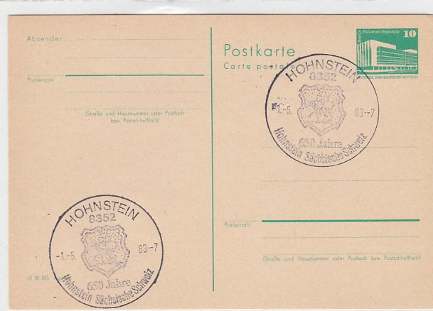 Hohnstein Sachsen Postkarte mit Sonderstempel 1983