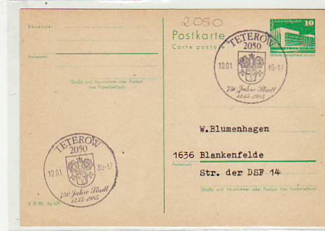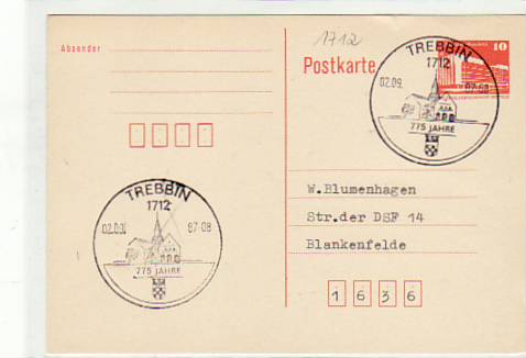Trebbin Postkarte mit Sonderstempel 1987
