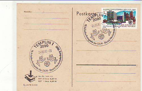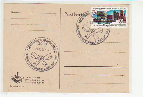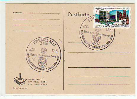Wolgast Mecklenburg Postkarte mit Sonderstempel 1982