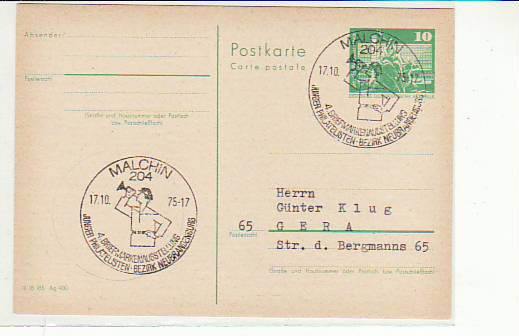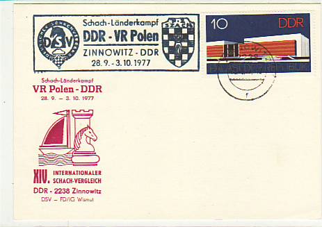 Ostseebad Zinnowitz Usedom Postkarte mit Sonderstempel Schach 1977