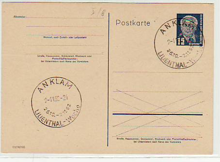 Anklam Postkarte mit Sonderstempel 1952