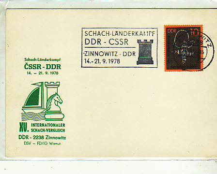 Ostseebad Zinnowitz Usedom Postkarte mit Sonderstempel Schach 1978
