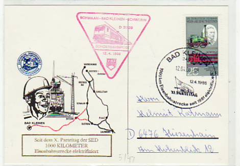 Bad Kleinen in Mecklenburg Postkarte mit Sonderstempel 1986