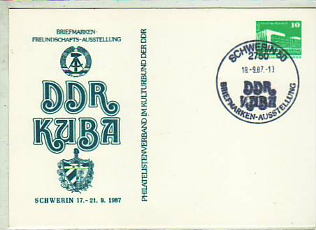 Schwerin Postkarte mit Sonderstempel DDR-Kuba 1987