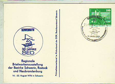 Schwerin Postkarte mit Sonderstempel 1976