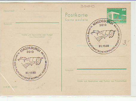 Magdeburg Postkarte mit Sonderstempel Raumfahrt 1989