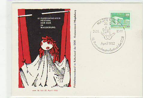 Magdeburg Postkarte mit Sonderstempel Puppentheater 1982