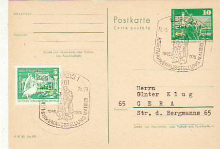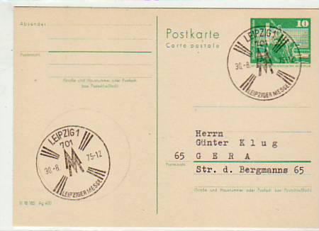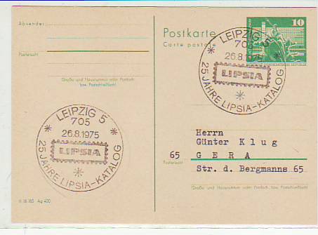 Leipzig DDR-Postkarte Sonderstempel 1975