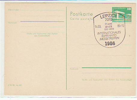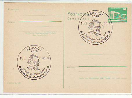 Leipzig DDR-Postkarte Sonderstempel Esperanto Messe