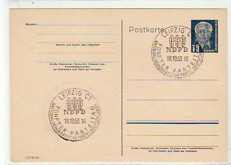 Leipzig DDR-Postkarte Sonderstempel NDPD 1953