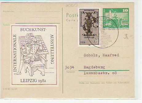Leipzig DDR-Postkarte Sonderstempel Buchkunst 1982
