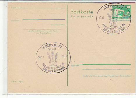 Leipzig DDR-Postkarte Sonderstempel Eutritzsch 1985