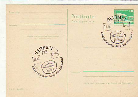 Cottbus DDR Postkarte mit Sonderstempel Bahnof-Postamt 1983