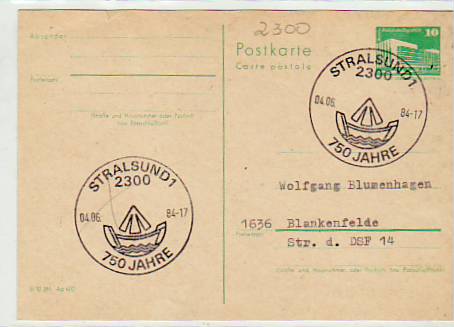 6777 [2300o466] |  | Stralsund Postkarte 750 Jahre Sonderstempel | 3.00EUR 1.50EUR | In den Warenkorb |