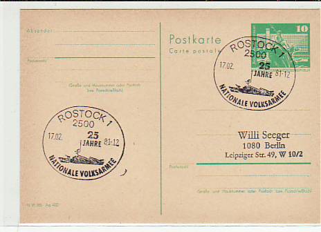 6772 [2500o664] |  | Rostock Postkarte NVA Sonderstempel 1981 | 3.00EUR 1.50EUR | In den Warenkorb |
