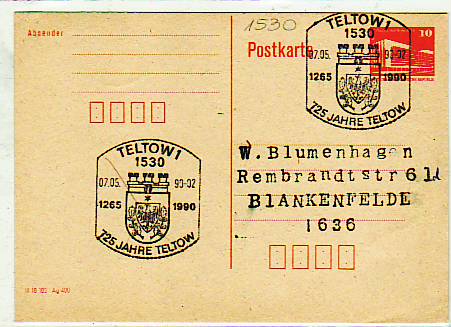 6733 [1530o30] |  | Teltow Postkarte Sonderstempel 725 Jahre | 3.00EUR 1.50EUR | In den Warenkorb |