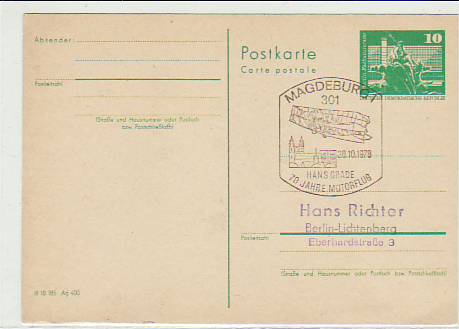 6712 [3000o1219] |  | Magdeburg Sonderstempel Postkarte Belege Technik 1986 | 3.00EUR 1.50EUR | In den Warenkorb |