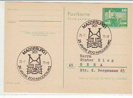 6702 [3000o1231] |  | Magdeburg Sonderstempel Postkarte Belege Ausstellung Tiere | 3.00EUR 1.50EUR | In den Warenkorb |
