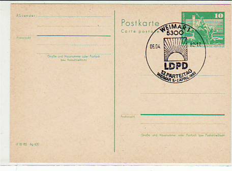 6758 [5300o526] |  | Weimar Postkarte Sonderstempel Parteitag LDPD 1982 | 3.00EUR 1.50EUR | In den Warenkorb |