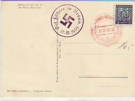 6870 [49900] |  | Propaganda Sonderstempel Brno-Brünn 1939 | 17.00EUR 12.75EUR | In den Warenkorb |