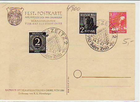 6843 [4900o137] |  | Zeitz Künstlerkarte Sonderstempel 1947 | 5.00EUR 2.50EUR | In den Warenkorb |