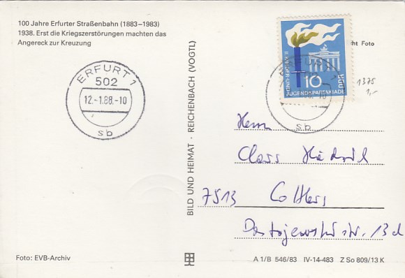Erfurt Thüringen Strassenbahn Anlaß AK 1983