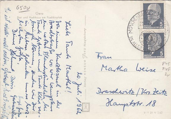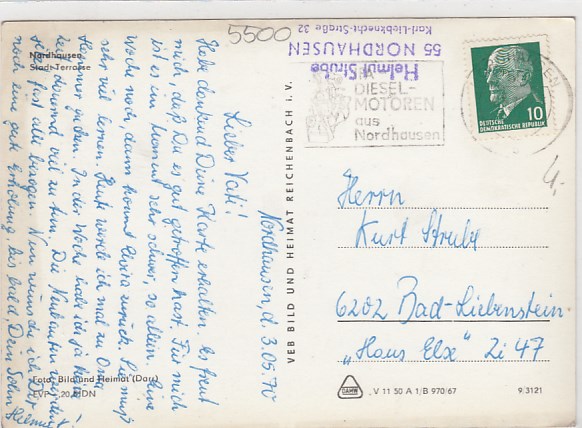 Nordhausen in Thüringen Strassenbahn Postamt 1970